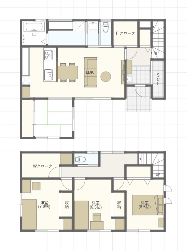 間取りは全室陽当りを考慮したレイアウトで、水回り導線から各収納計画に至るまできめ細かな設計となっております。