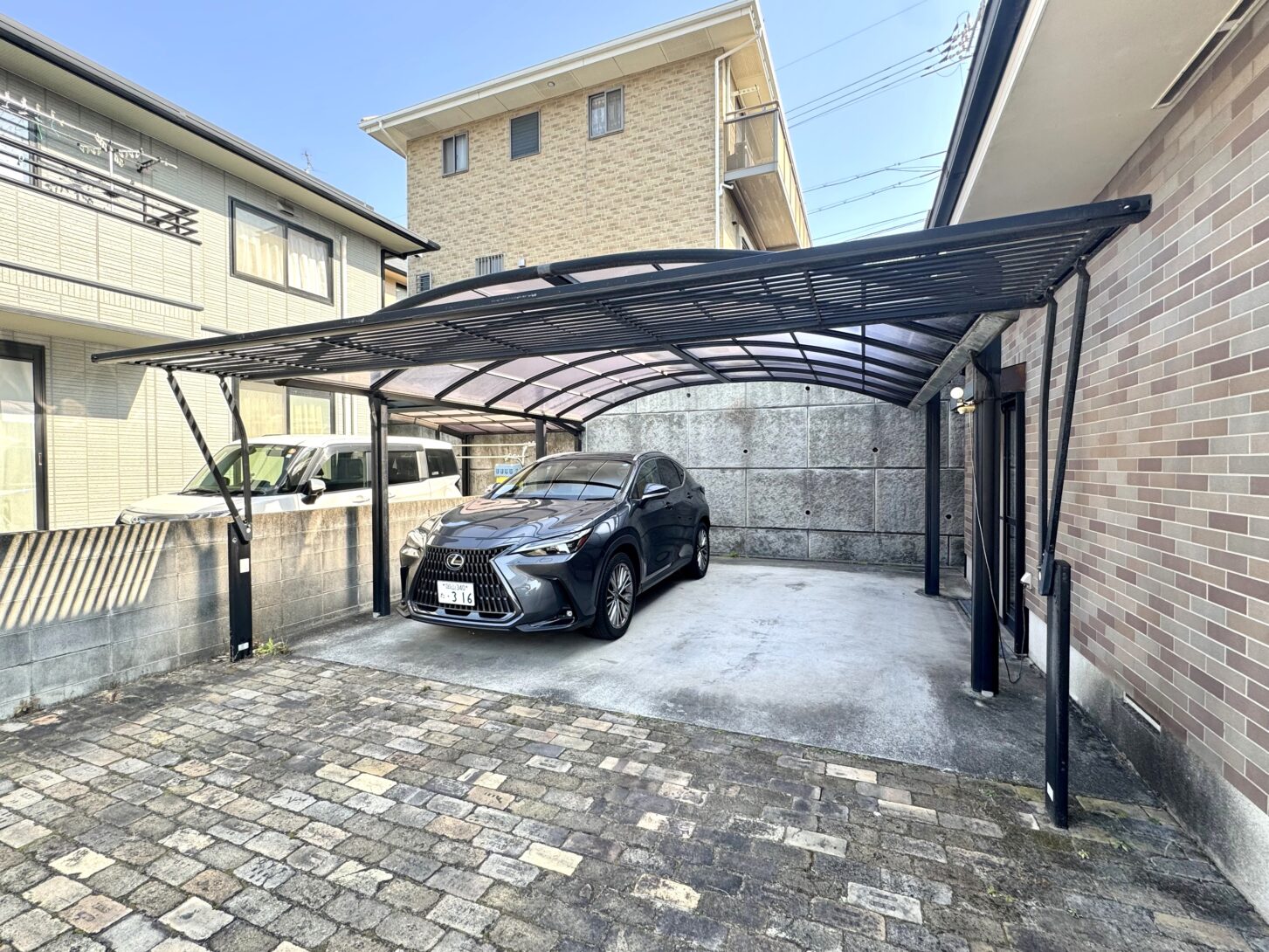 敷地は90坪越えのゆとりある広さで、駐車スペースはカーポート付で4台可能(^_-)-☆
